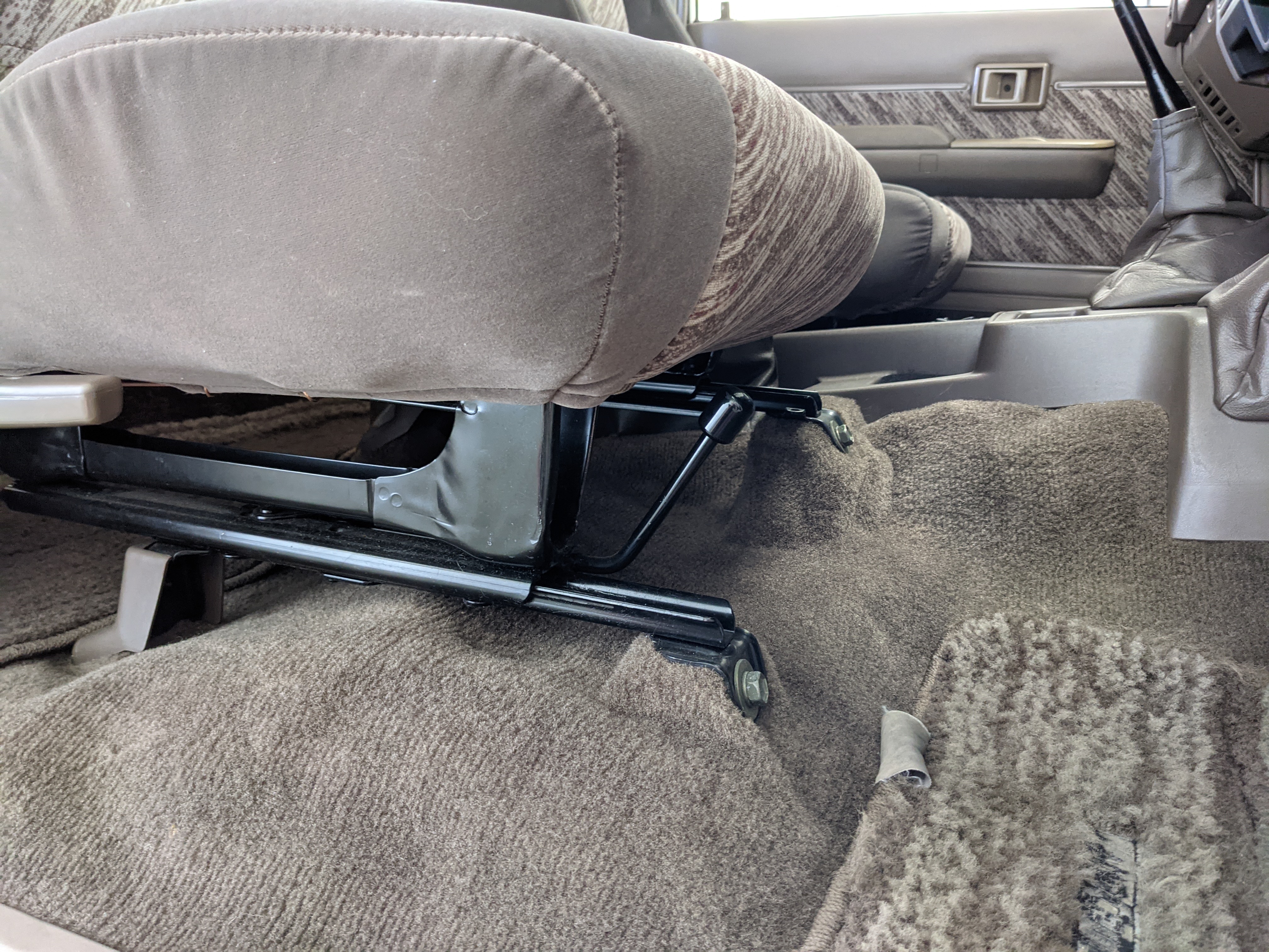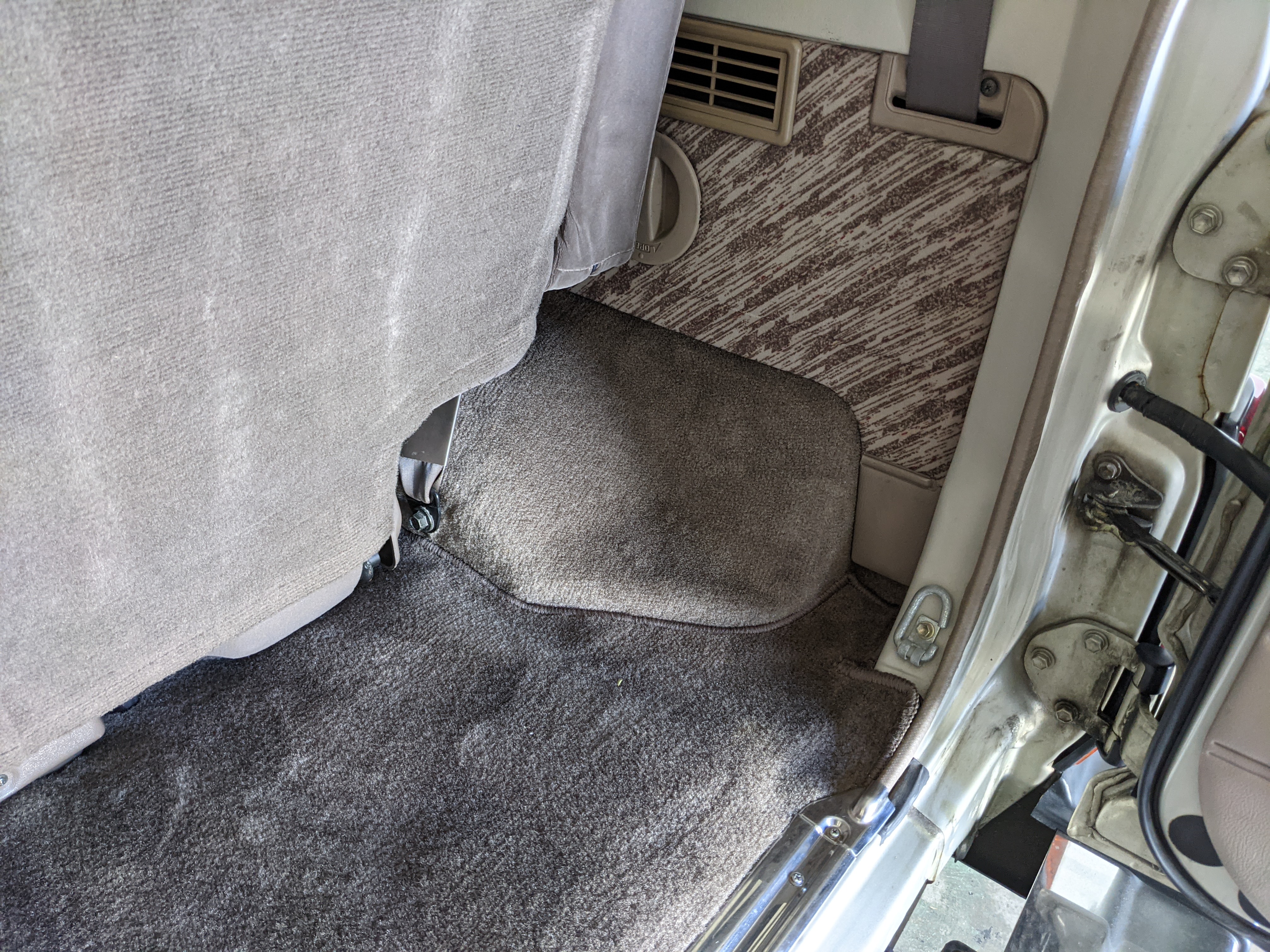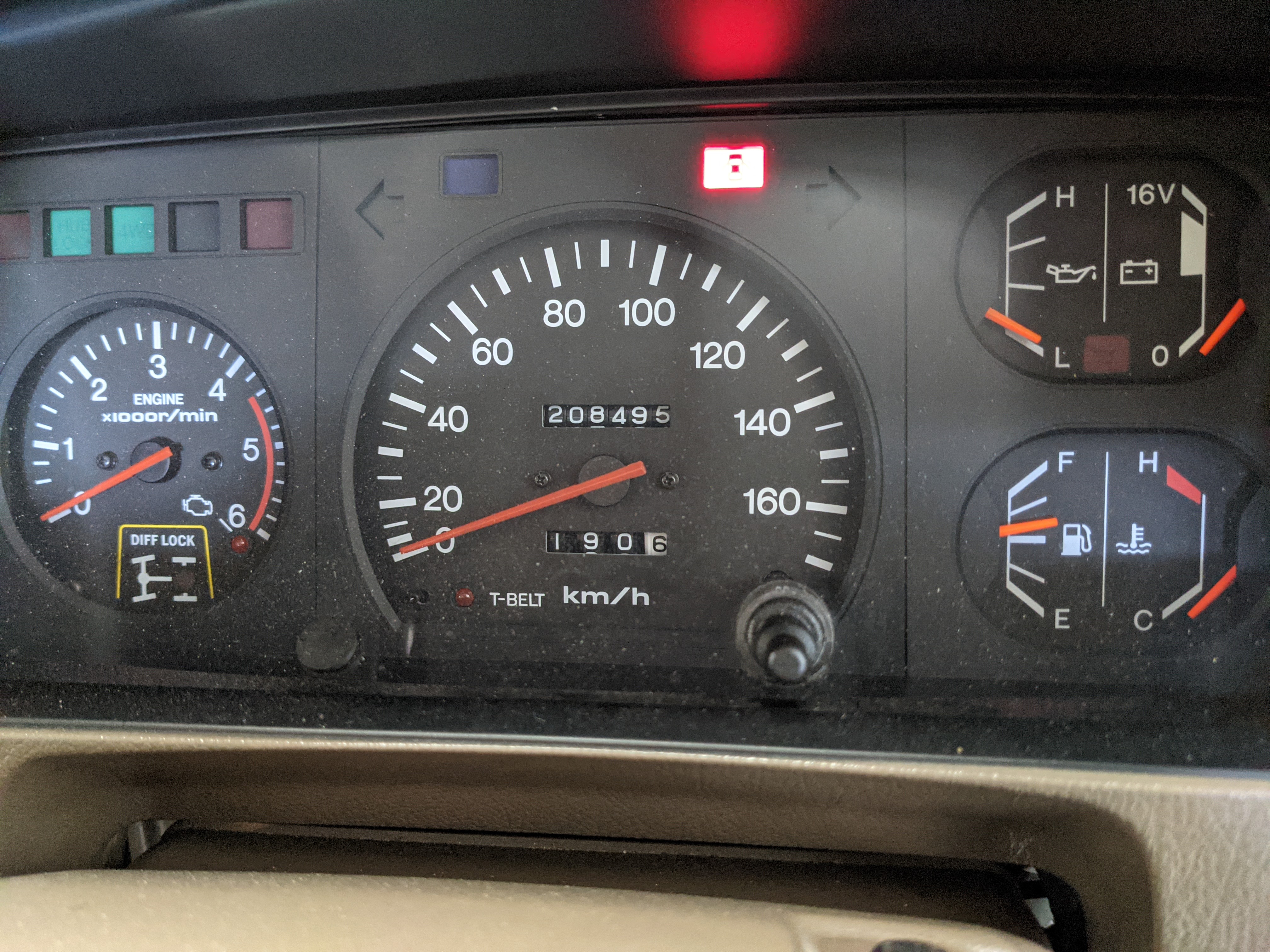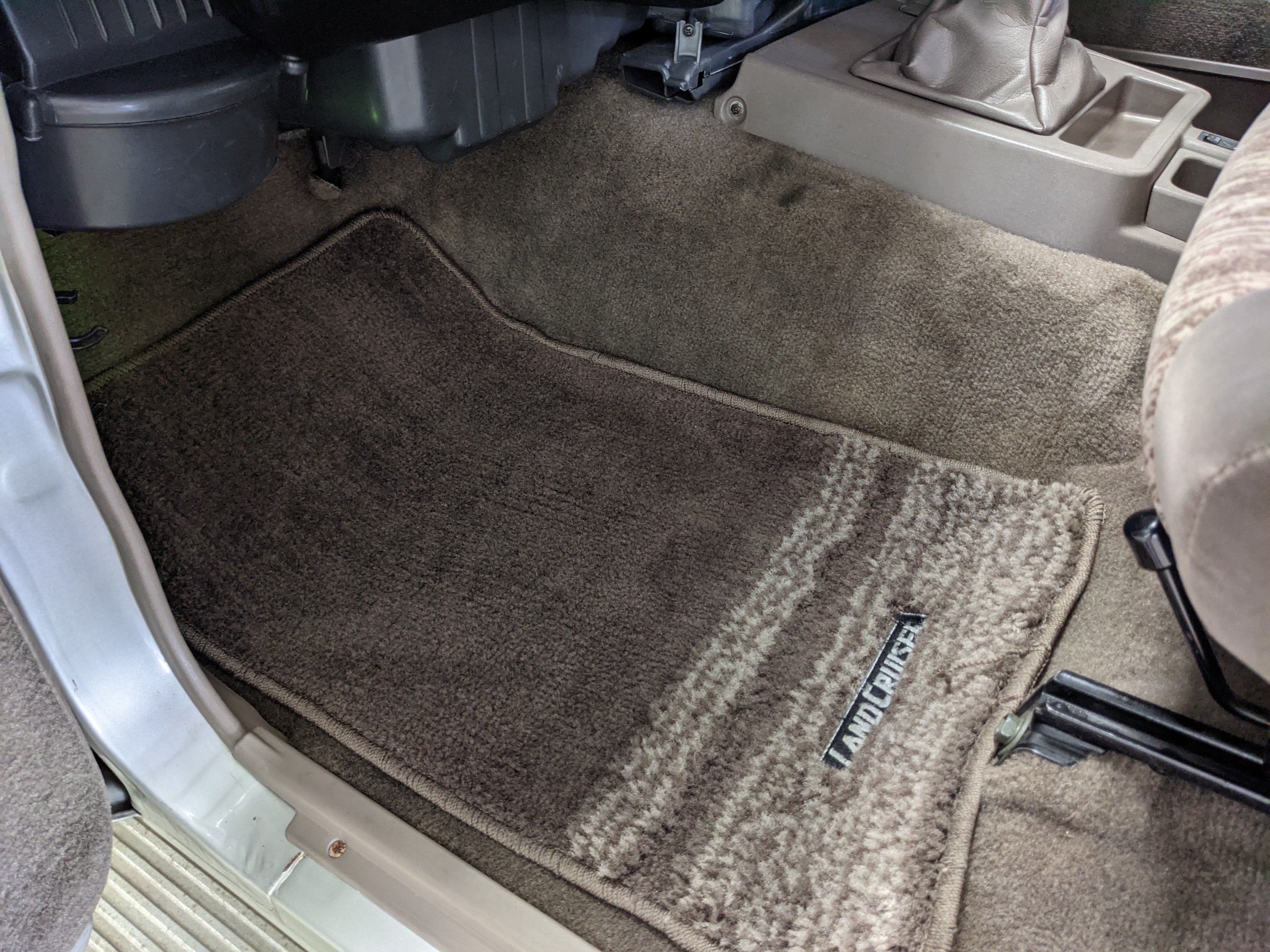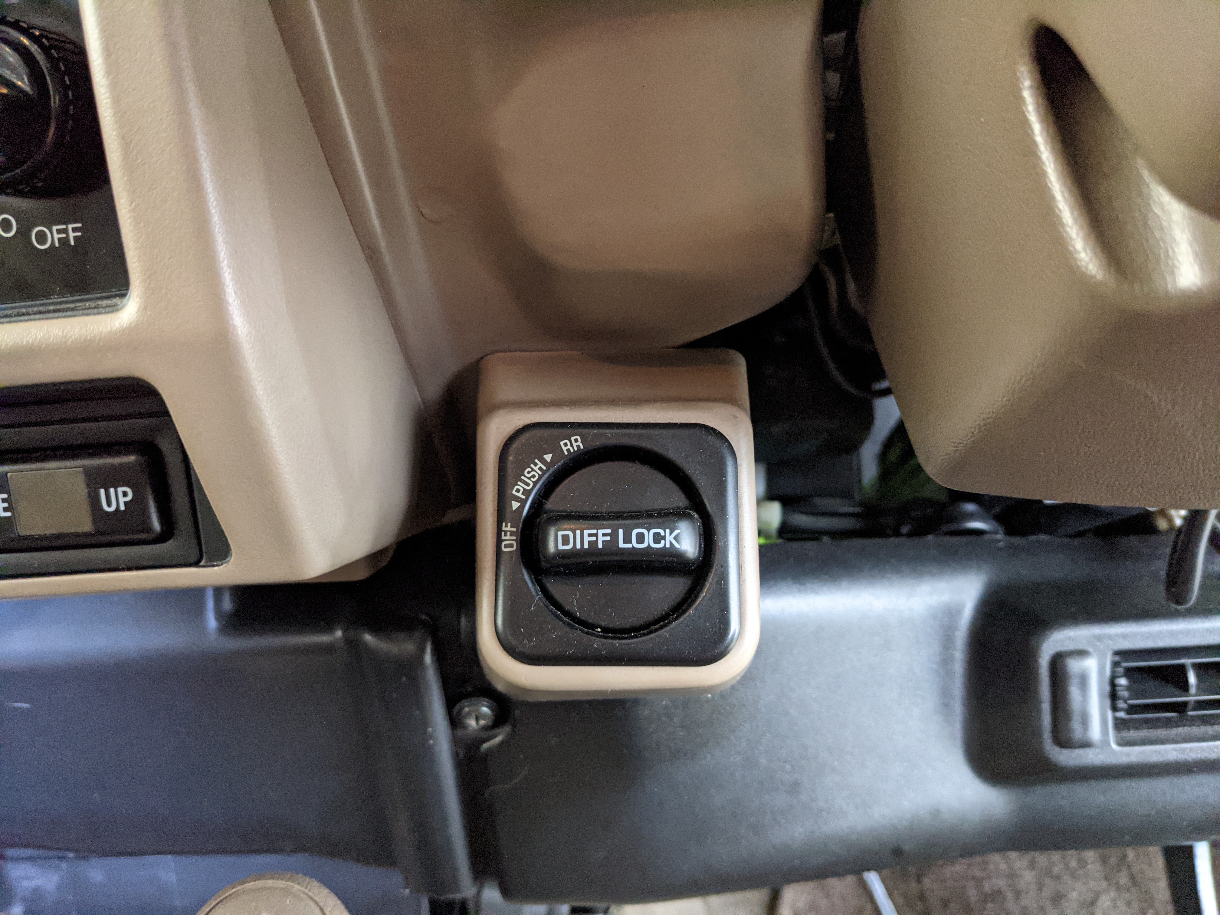 Inside is awash in what Toyota calls ‘sable’, but you or I would call it ‘beige’. That’s not a knock by the way, I find the interior of this Prado excellent to be enveloped in. Seating for 5 is what is listed, but that 5th person better be a small kid or they are going to hate riding with you. Power windows, power locks, 5 speed manual, diff lock switch and push button 4WD with lever-actuated low range. You do have to get out to lock your hubs, but nobody ever has anything bad to say about AISIN hubs. Air conditioning works perfectly, as does heat. Your stereo is a clean and simple Clarion M508, giving you all the musical connectivity you desire without throwing off the interior aesthetic. Speakers themselves have been upgraded at some point in the past and sound quite excellent. Previous owner was a non-smoker as evidenced by the spotless ashtray and cigarette lighter, also the complete lack of burns. Rear seats can fold forward giving you more cargo space when the time arrives.