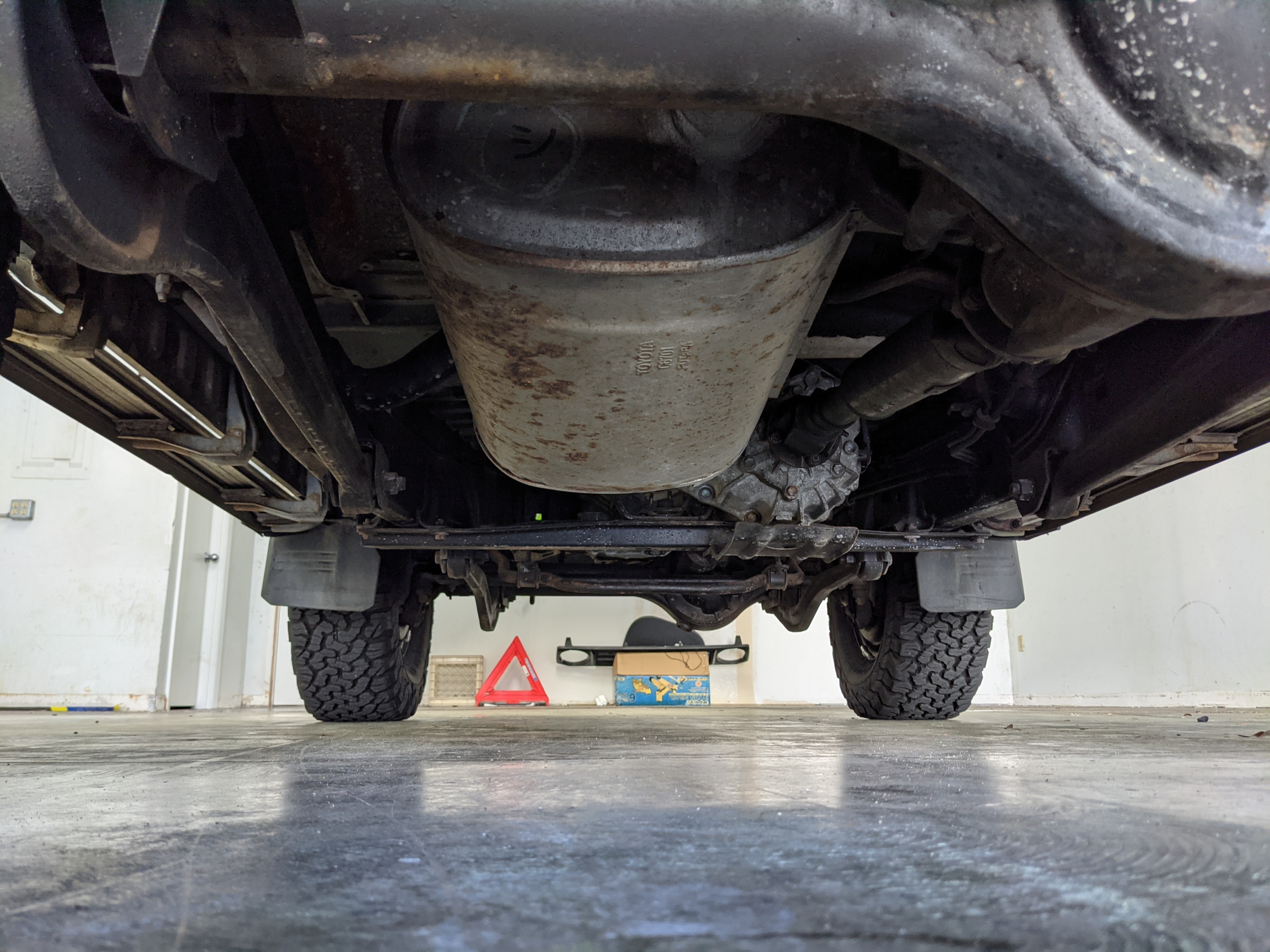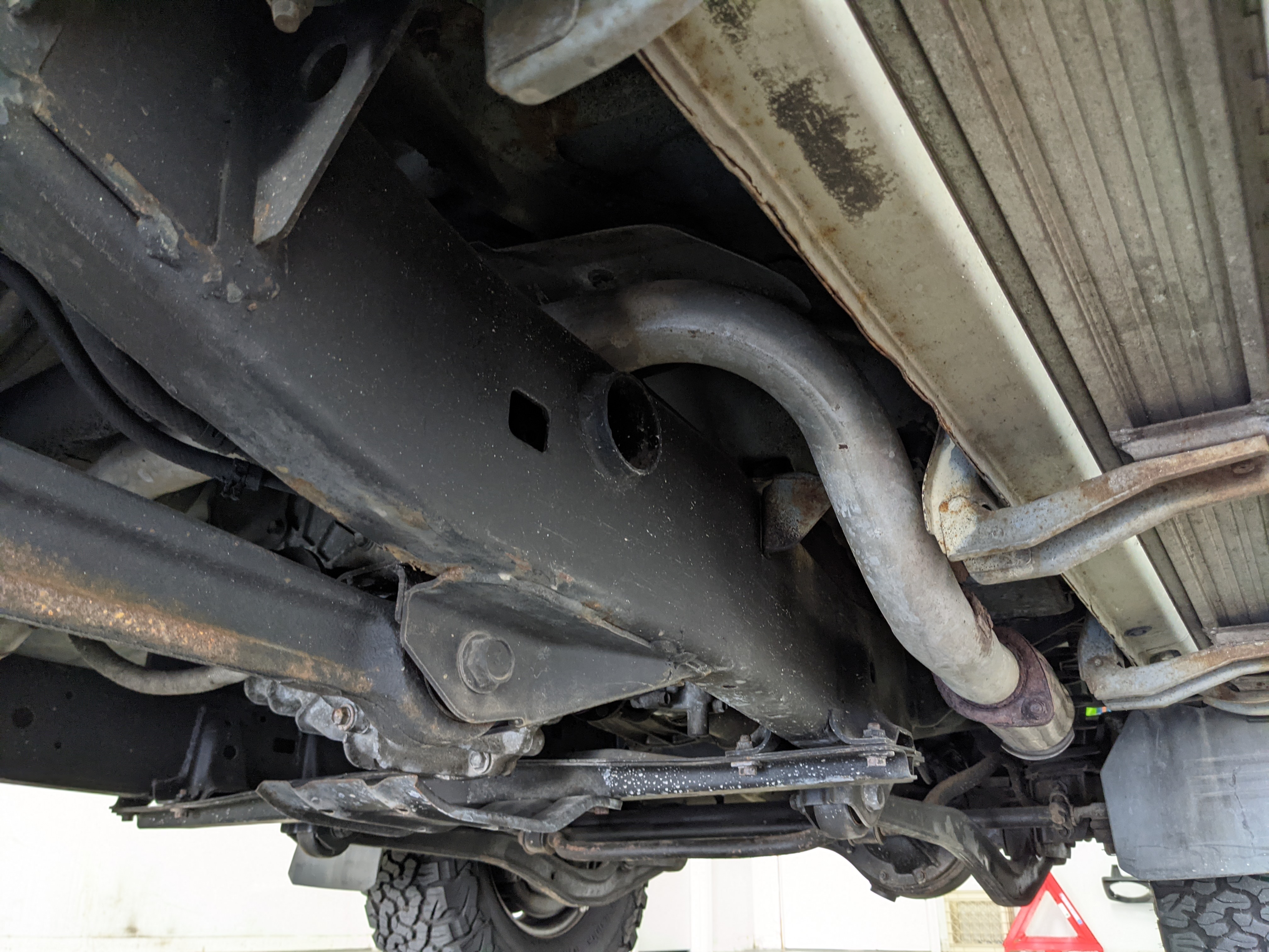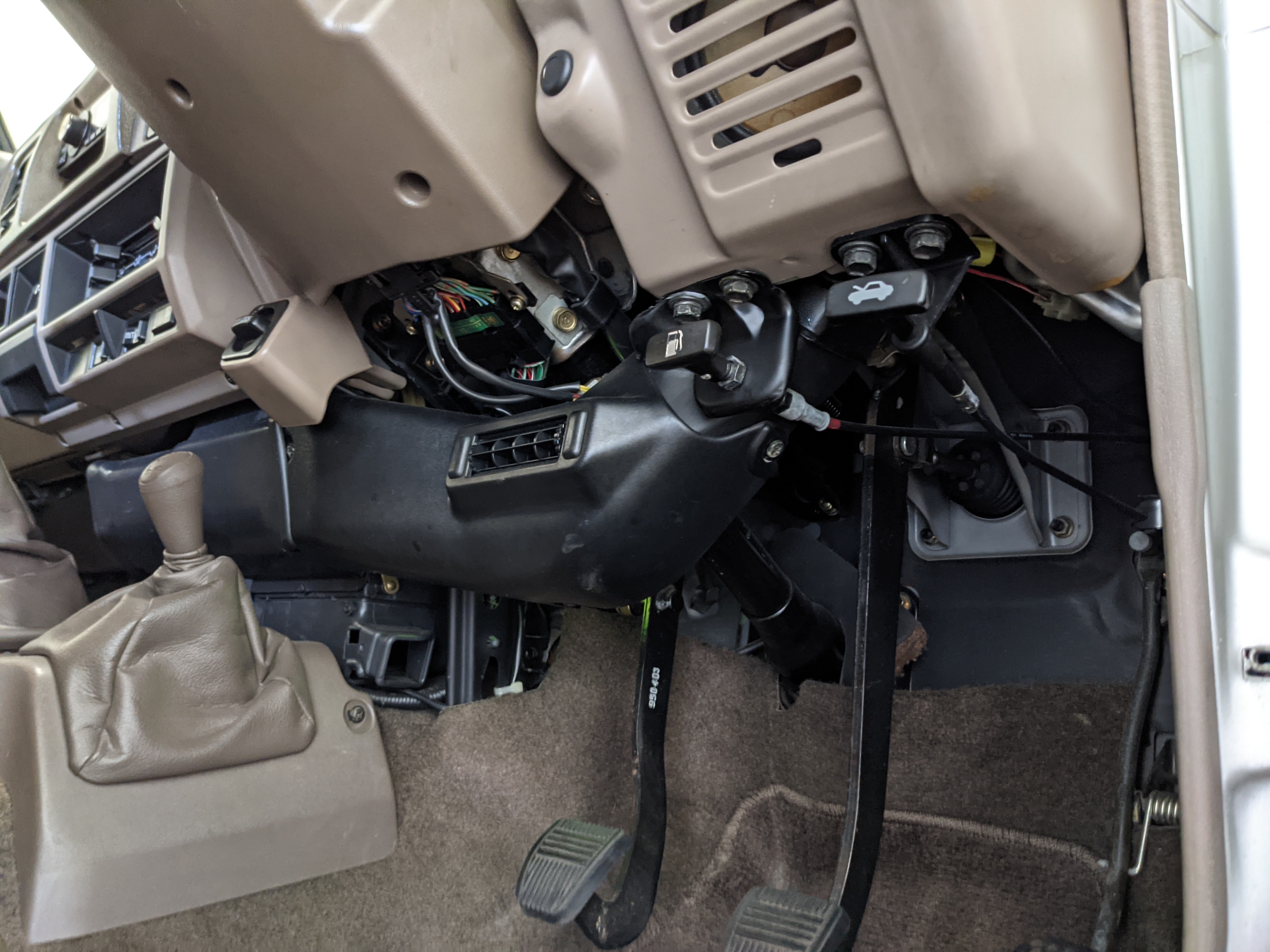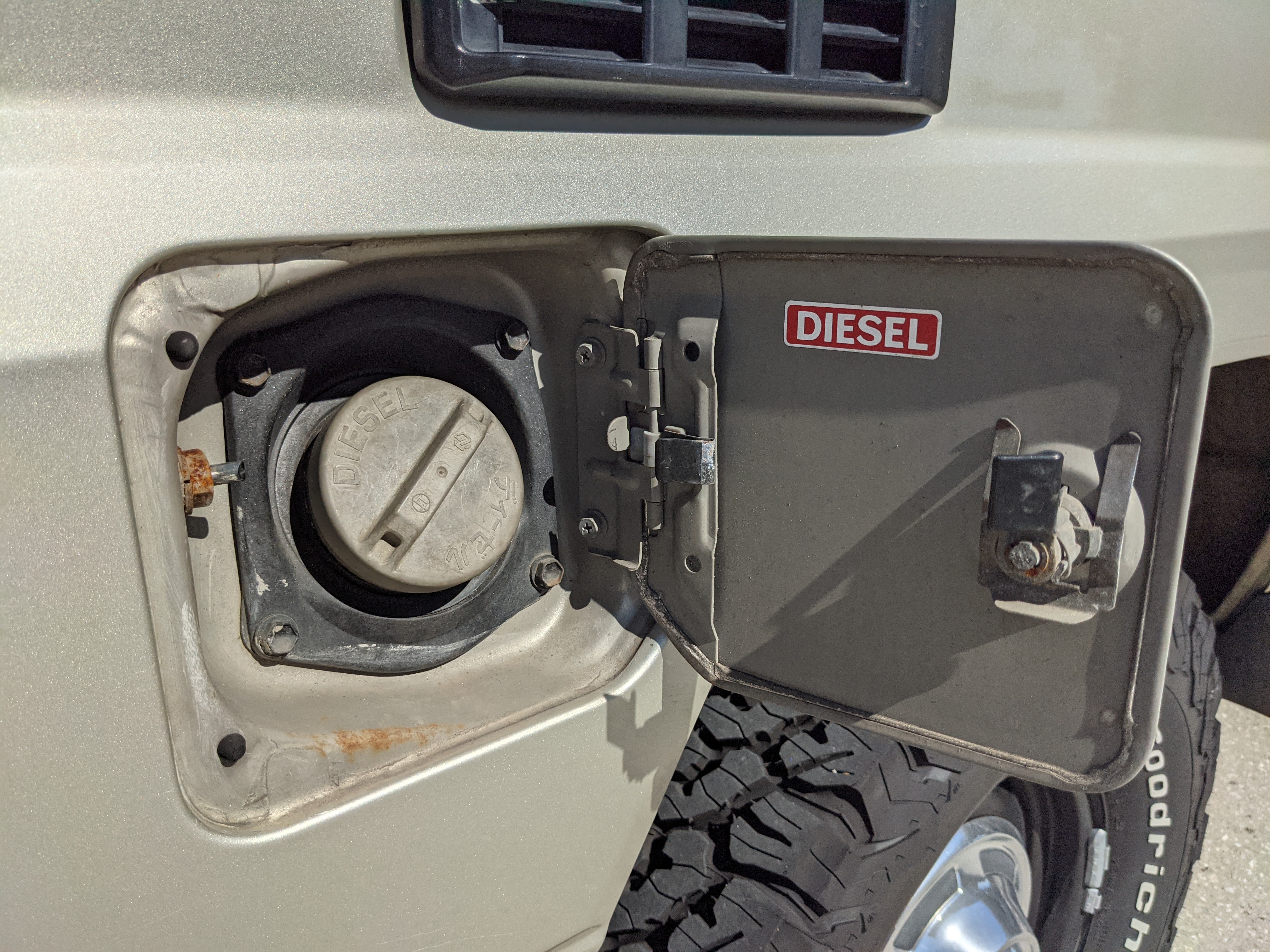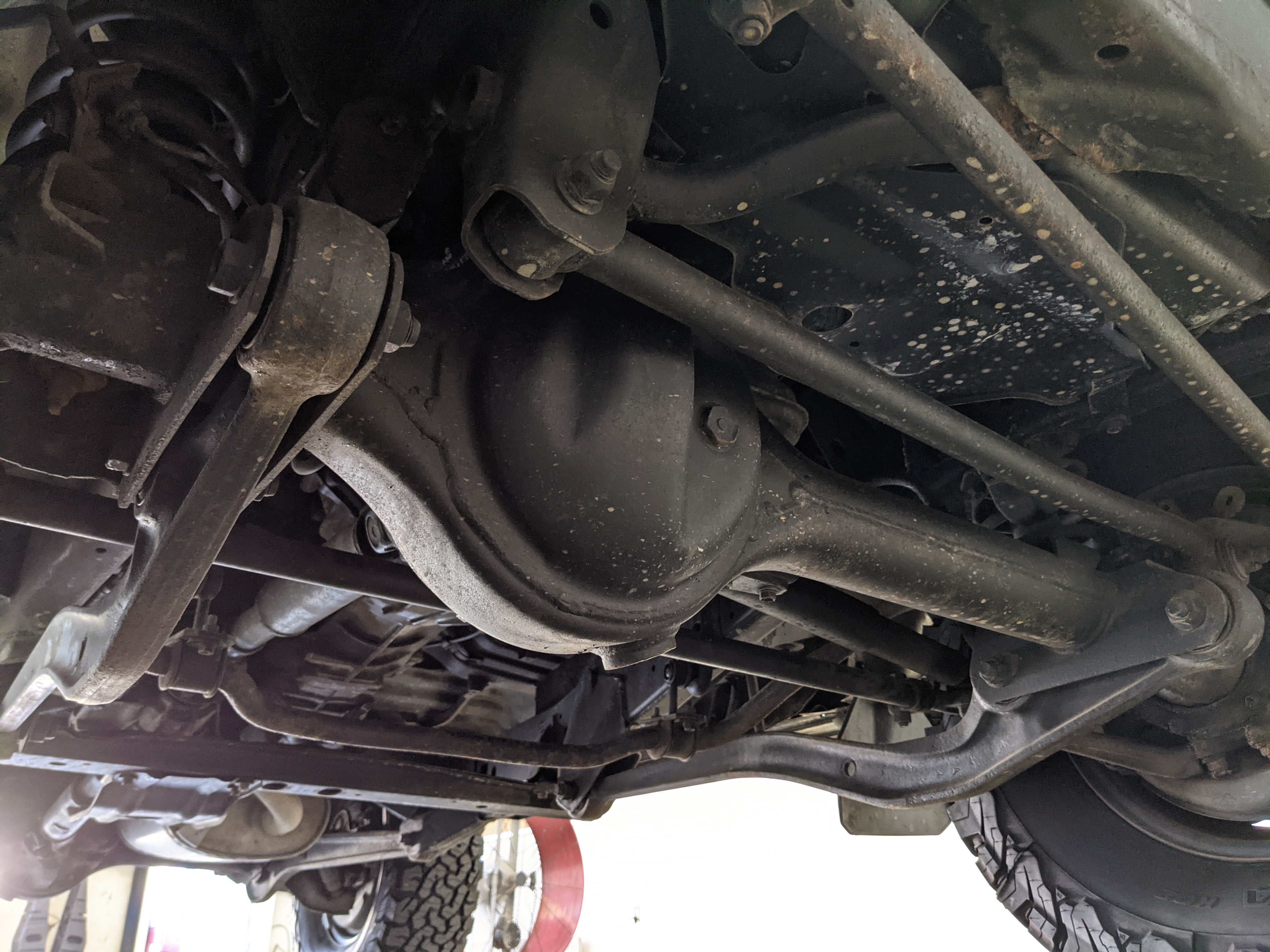 Repeat after me: Turbo diesel 3 liter KZ engine. 5 speed manual transmission. Locking rear differential. Short wheelbase, body-on-frame construction. Solid front and rear axles. Coil sprung suspension. Brand new BF Goodrich K02 tires mounted on old style black steel wheels with dog dish center caps. Two doors. Congratulations, you just described why this particular first-generation Land Cruiser Prado whips.
