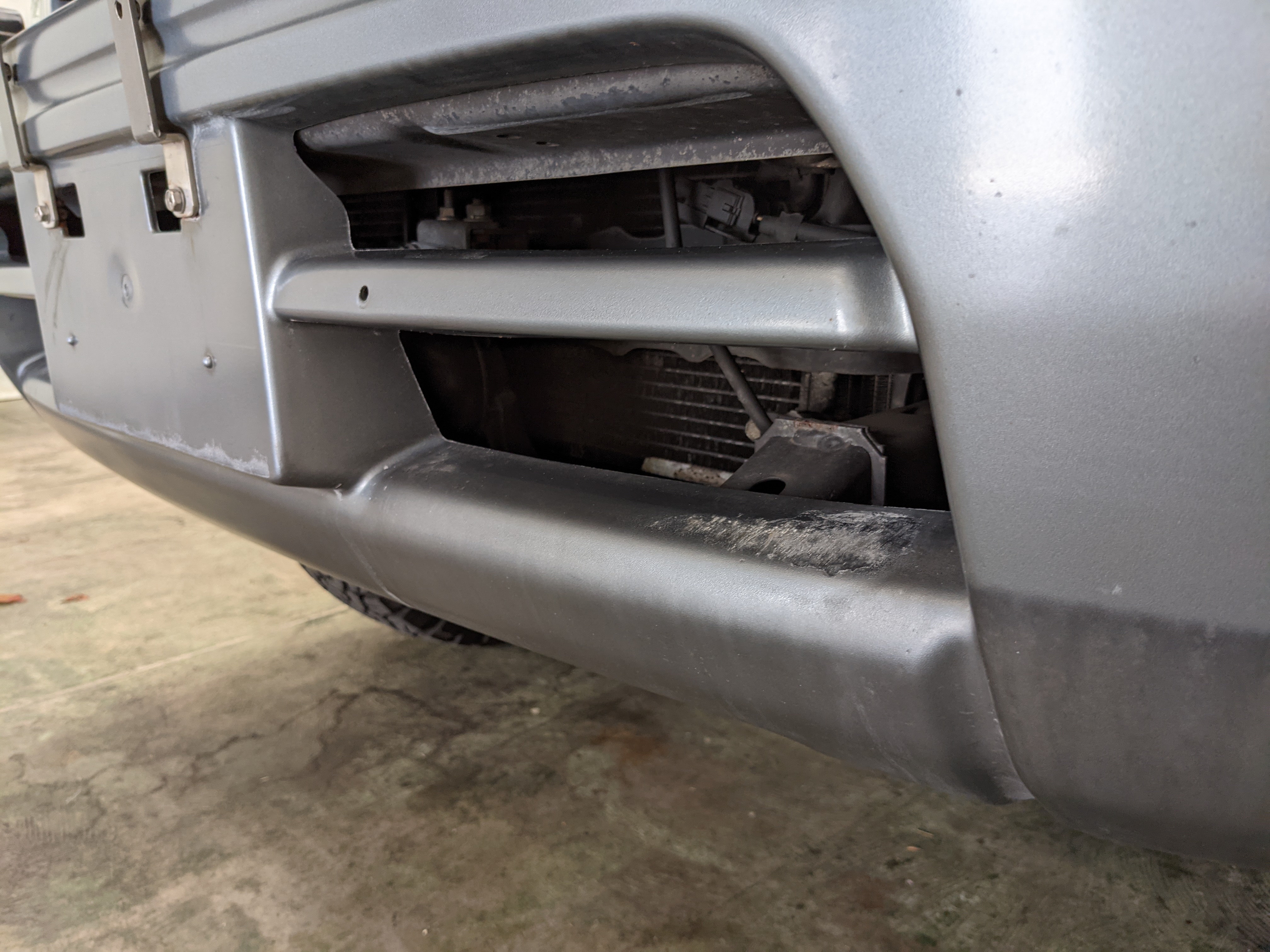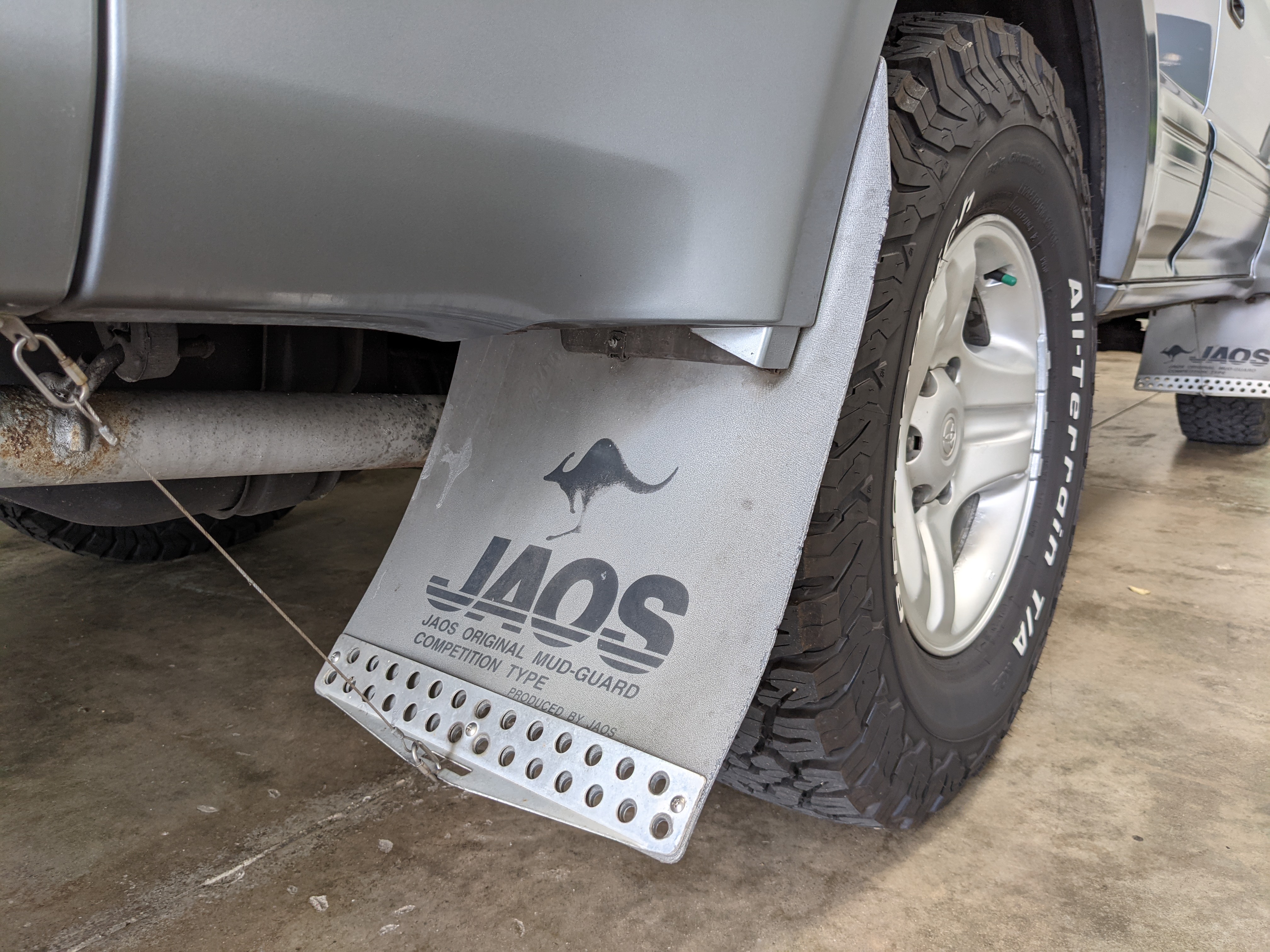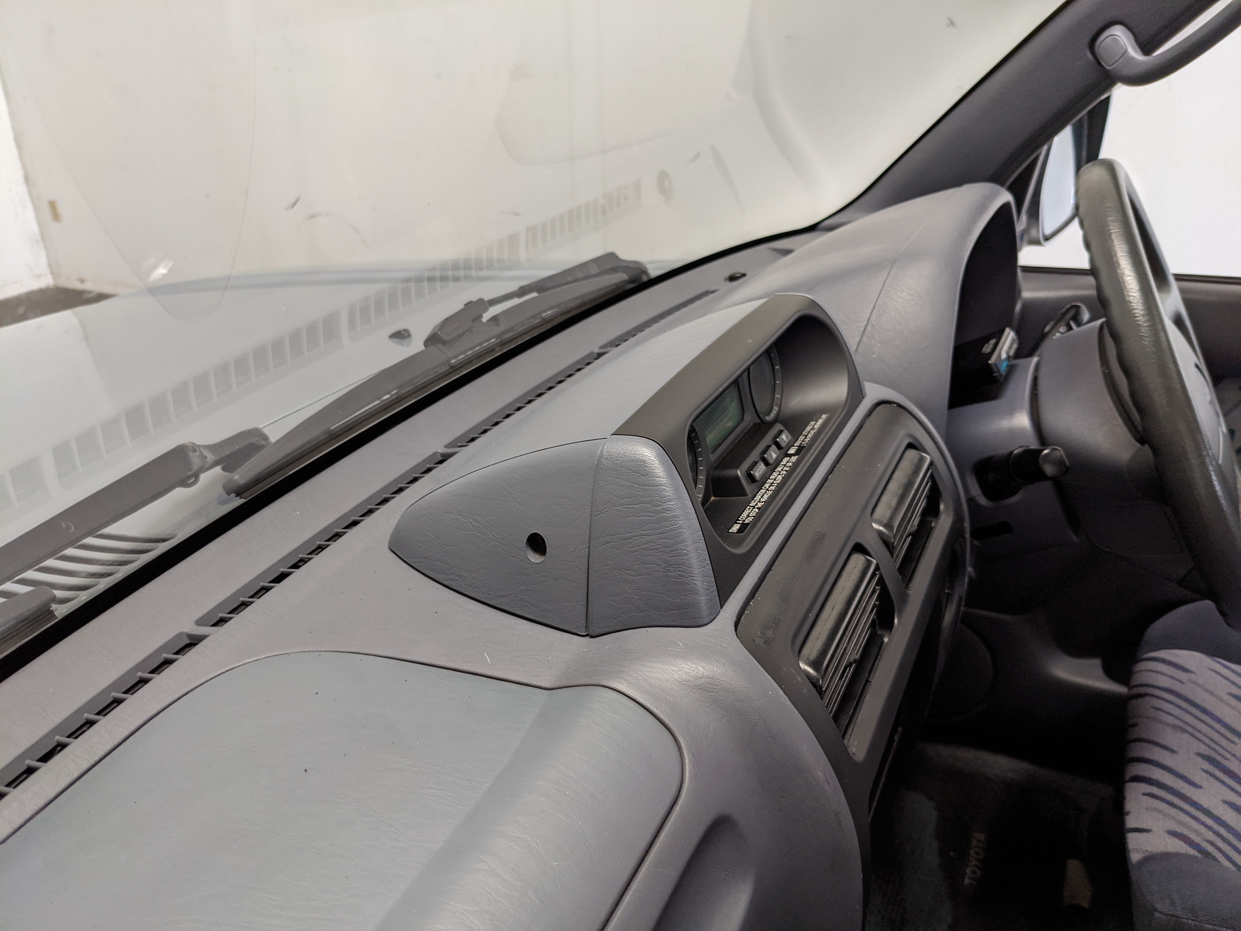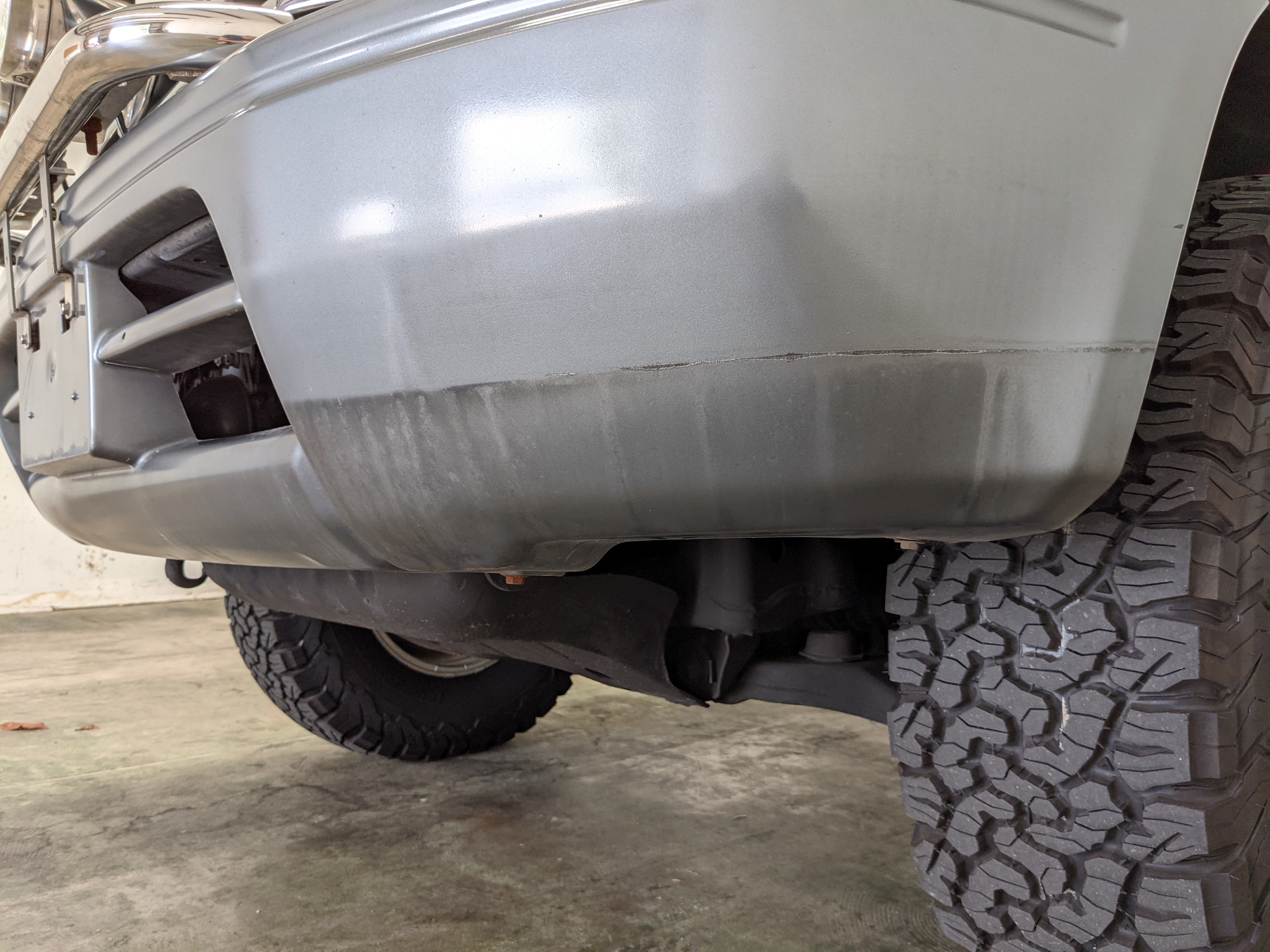 Bluish silver paint with darker lower panels set up a very 90s look right off the bat. This truck has a tall, athletic stance with excellent ground clearance. Very JDM rain guards over every window, front-mounted fog lights attached to an inboard bullbar with the corner-mounted mirror bleed even more distinctive vibes. Radical Toyota-original 3 spoke wheels wrapped in BF Goodrich KO2s white letters out complete the look. Top it off with a massive OEM Toyota aluminum rack and you have yourself a fantastically capable, excellent daily driver. As an added bonus (especially for 1996) you get a proximity sensor on your rear left bumper that beeps to let you know when you are about to hit something.