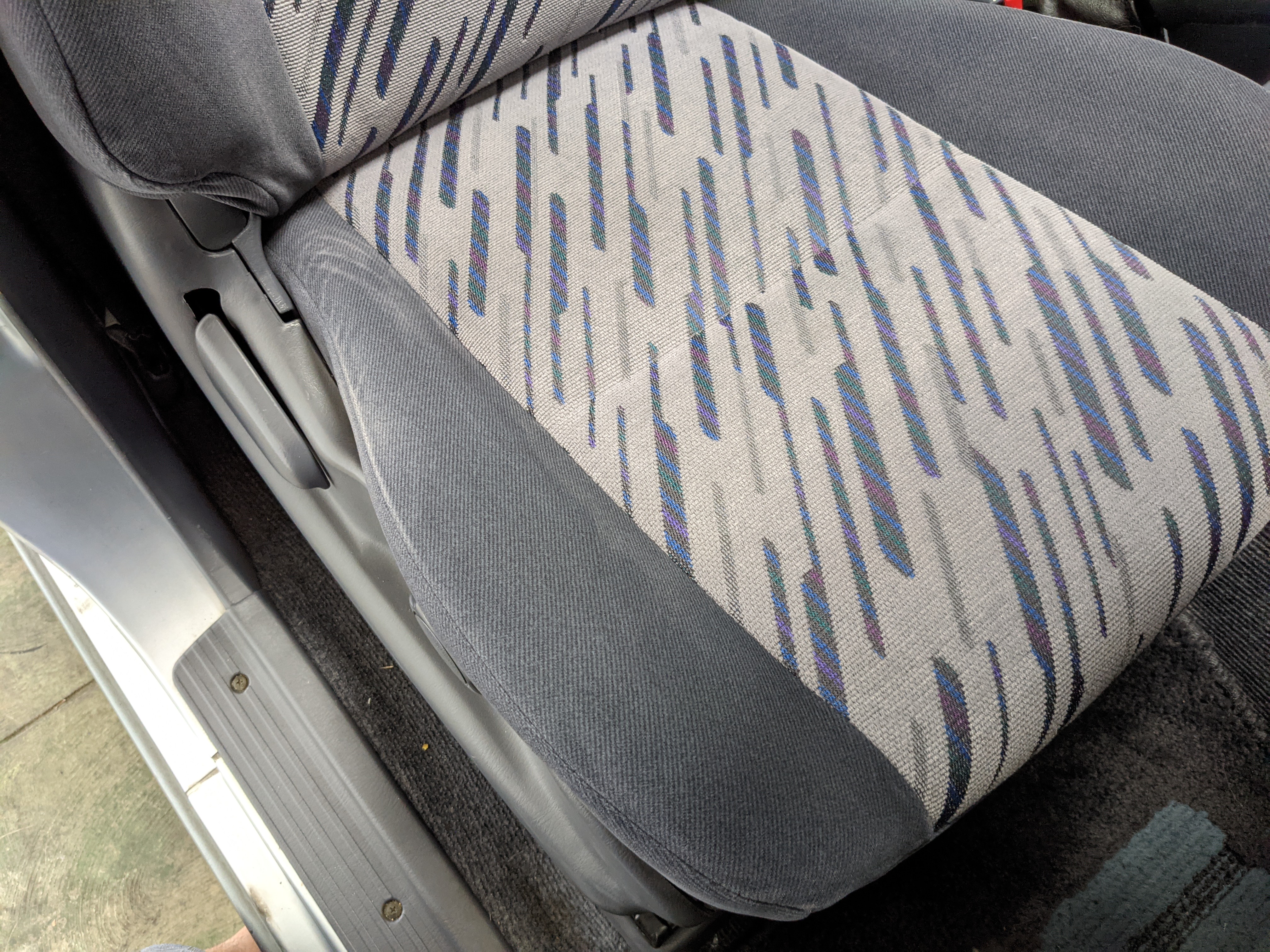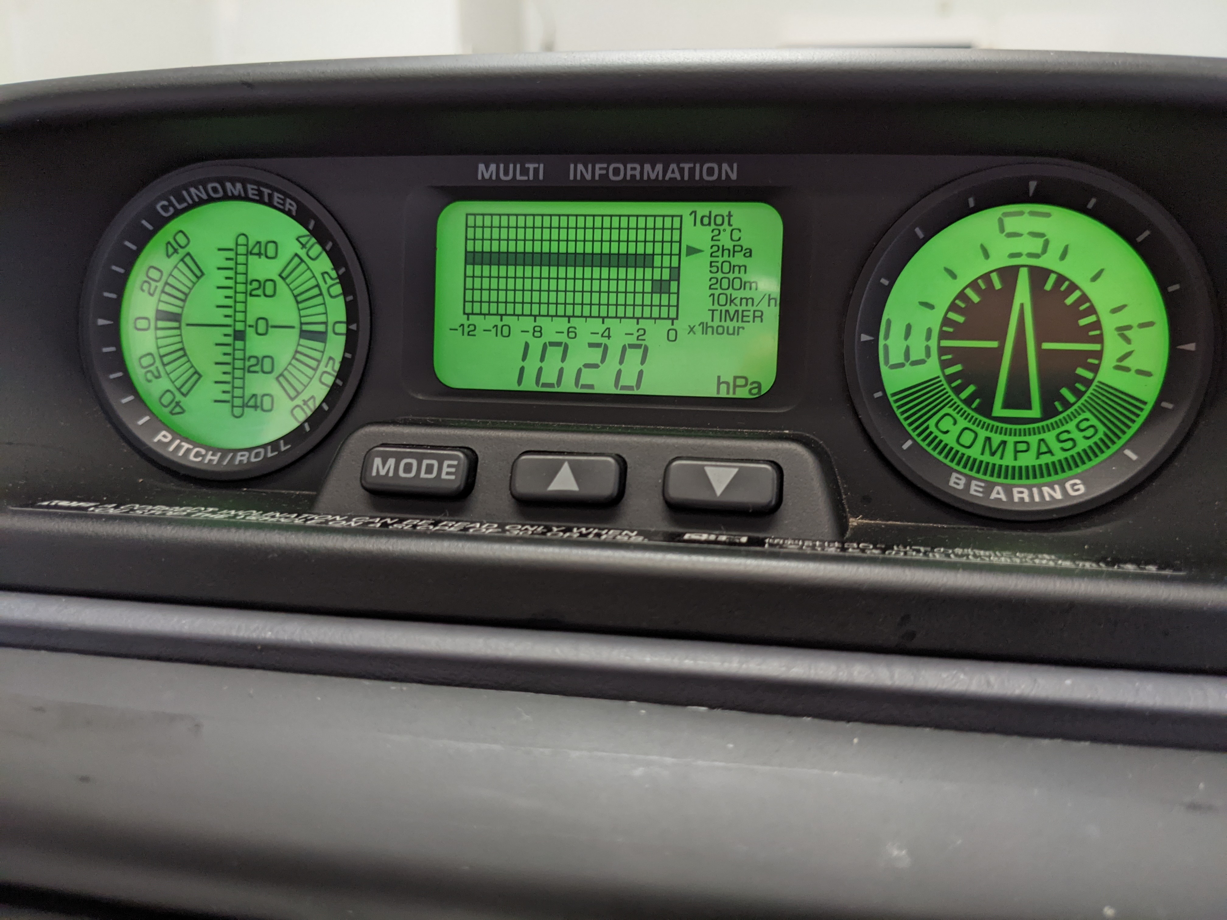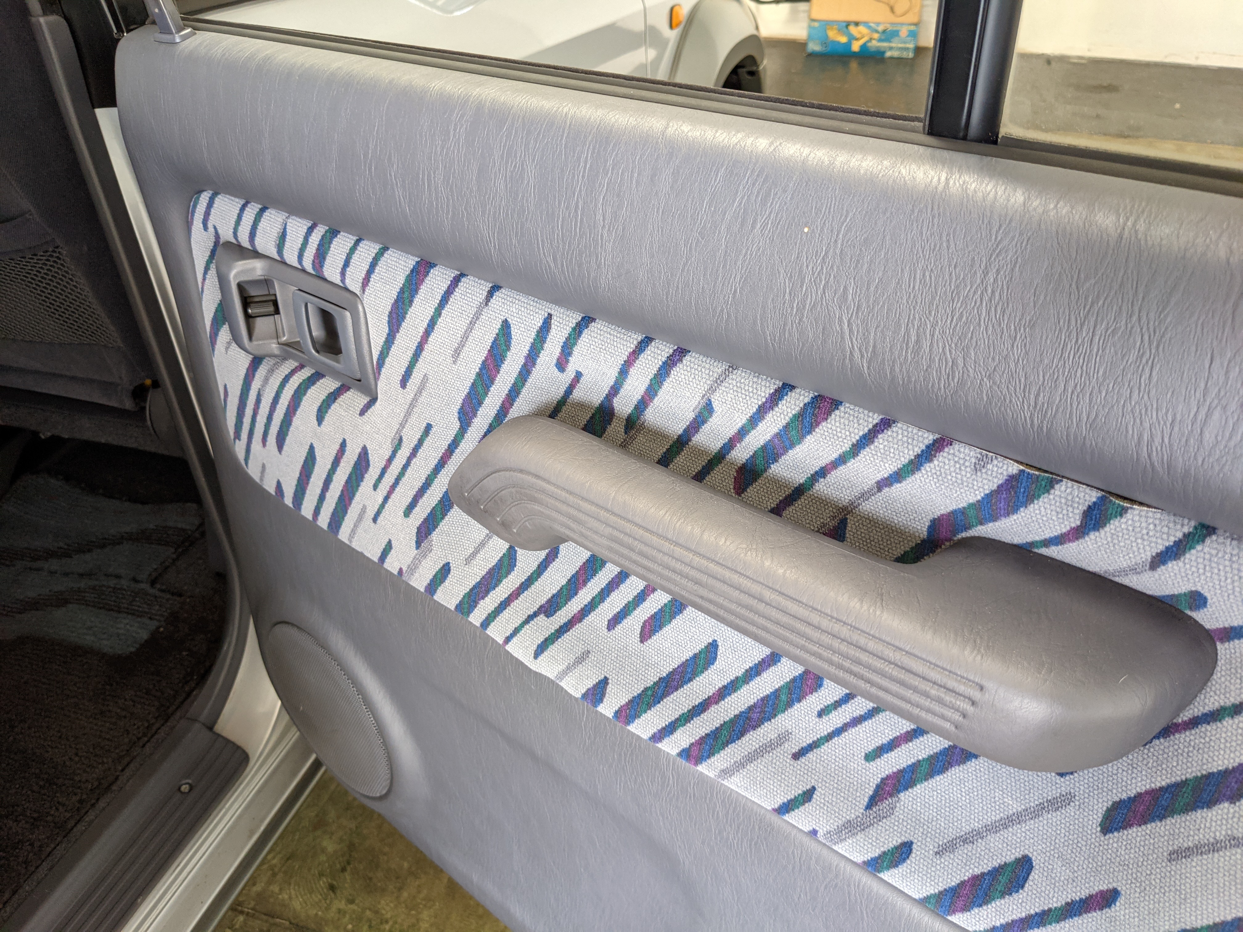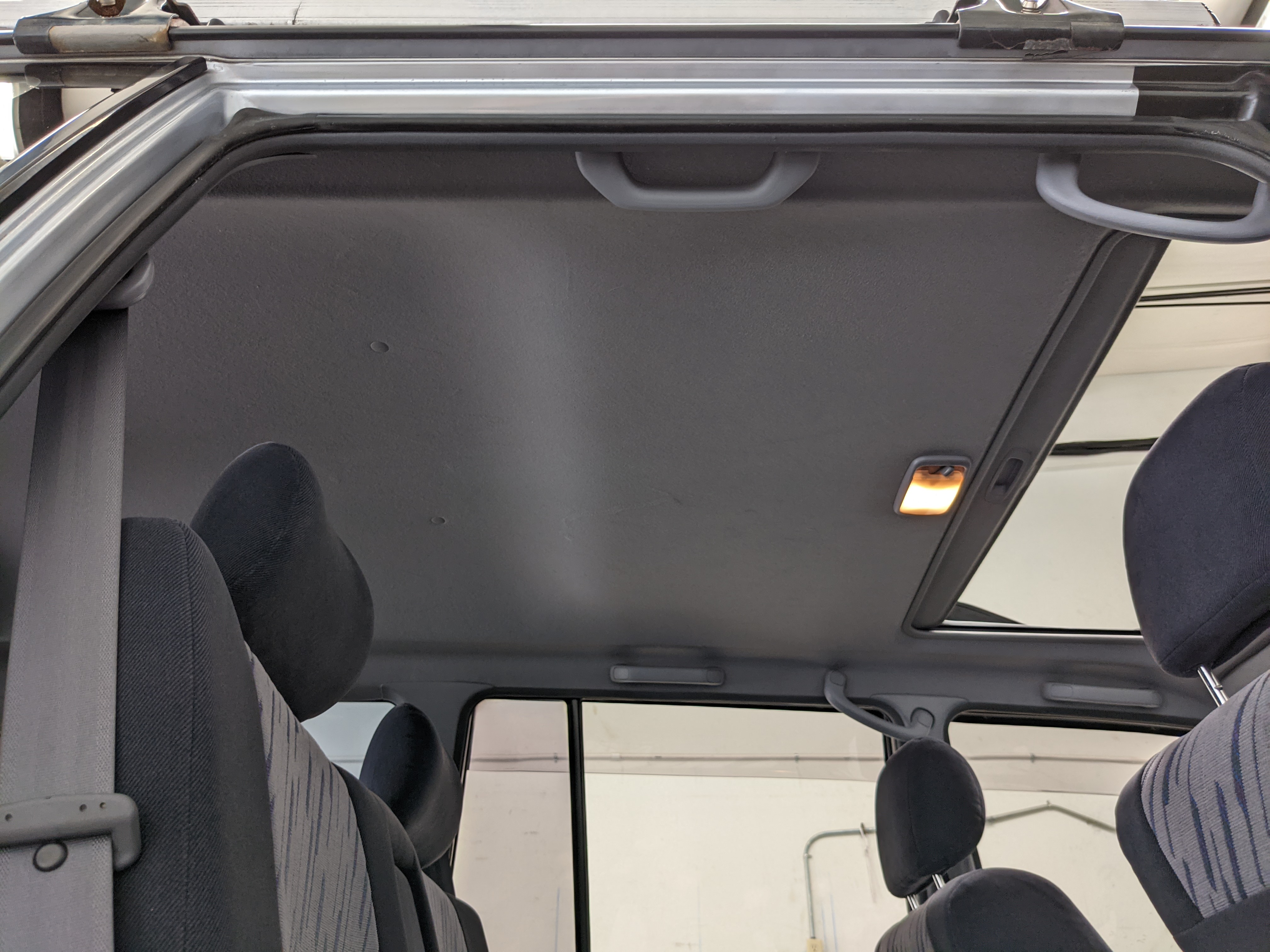 Blue, green and purple splashes of color dot the door panels and seats. As such, the seats themselves are comfortable fabric affairs, with great bolstering. Standard instrument cluster up front, amazing visibility all around and a functioning sunroof above your head. Above the center stack is the ‘Field Monitor’, a sort of digital information pod that includes an inclinometer, pitch/roll indicator and a digital compass. In addition it can display temperature, elevation, barometric pressure, digital speedometer (in kilometers of course) and a timer. Below this is arguably the star of the show, a 5 speed manual transmission along with a low-range selector. The stereo is missing, thankfully the wiring harness is uncut so is ready to have any USDM double-din unit you’d like installed. Automatic climate control and a little drawer, along with an analog clock are here as well. You also get dual front airbags and ABS which is a far cry from the “not at all” available in the last generation. Center console can swallow all sorts of things under its lid, including four drinks in its various cupholders. Backseats are clean and comfortable, with a smaller set of third row seats in the very back. The cargo area is large on its own but can be made significantly larger if you fold the rear seats forward.