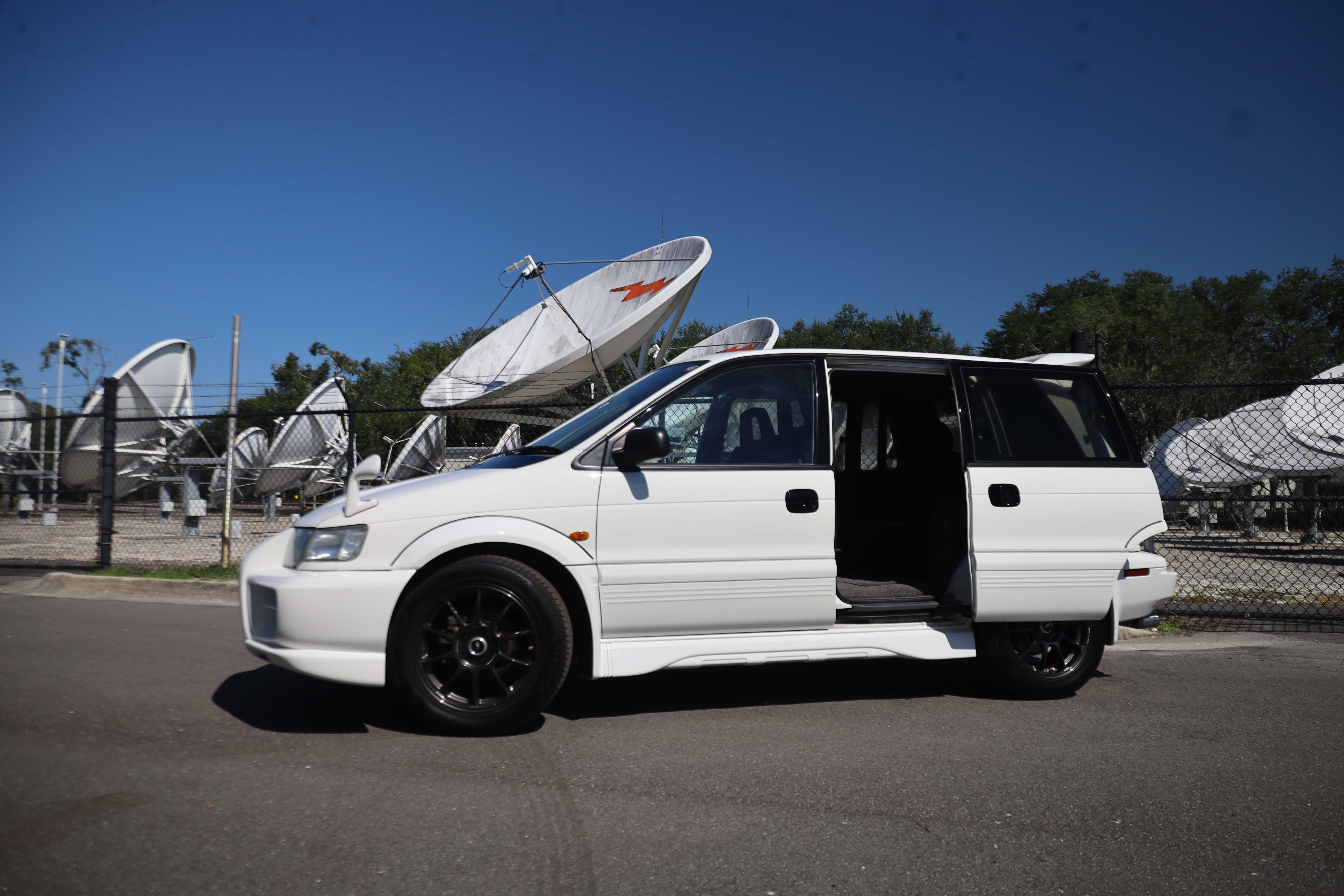This is the 1997 Mitsubishi RVR Hyper Sports Gear R, one of only 700 examples every produced featuring the rally-stage winning 4G63T AWD manual drivetrain of the Lancer Evolution 3. This forged internal, turbo charged, 2 liter generating somewhere between 230 and 250 hp pushes this future-tech soccor-mom van from 0 to 60 in under 7 seconds.
