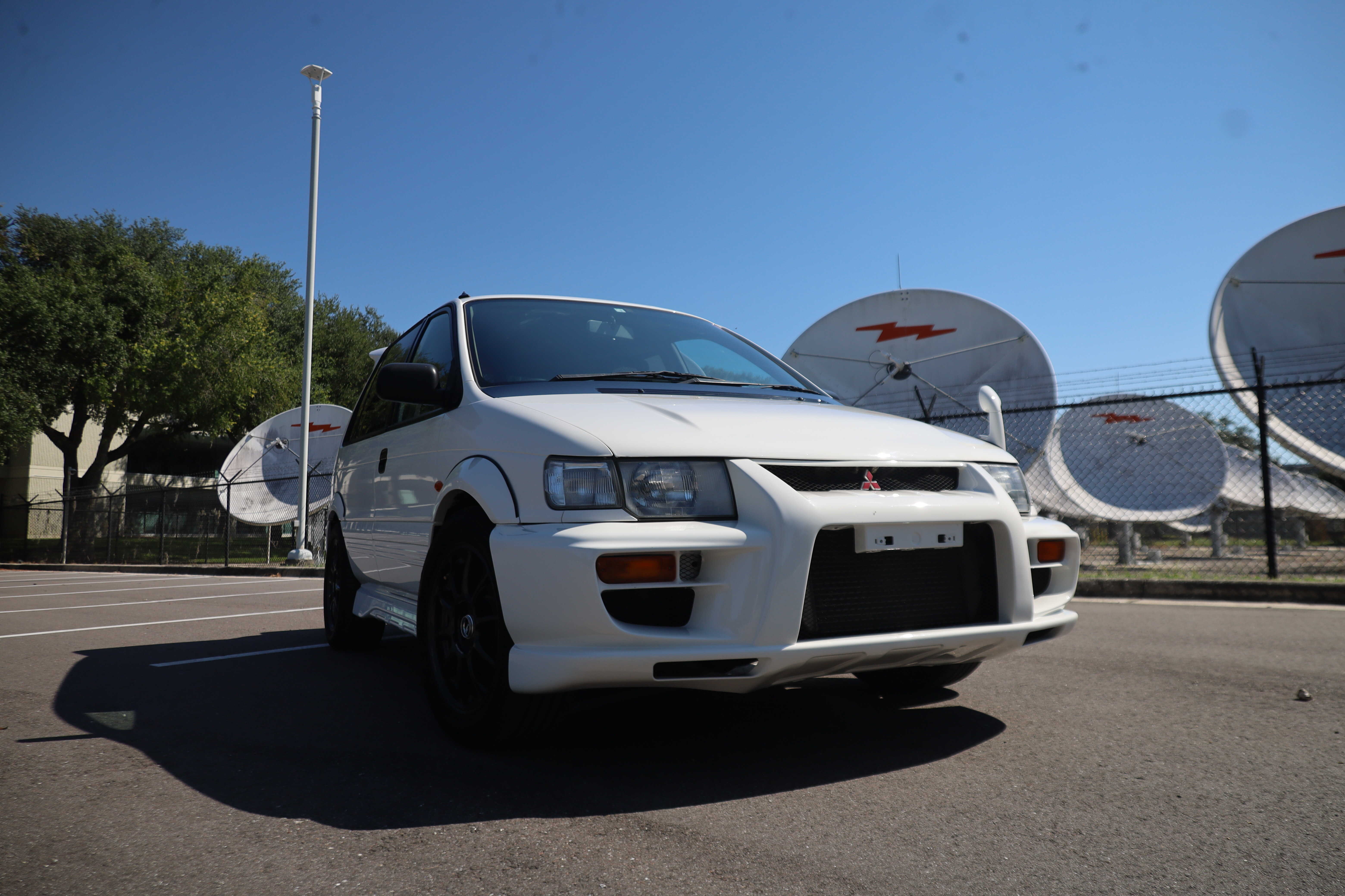 The R variant was equipped with a very Mitsubish Lancer Evo looking interior. Factory Recaro buckets, the classic Mitsubishi Grey plastic dash, and even the same climate control stack. Flipping into the back, a 2 seat bench which folds flat into a bed.