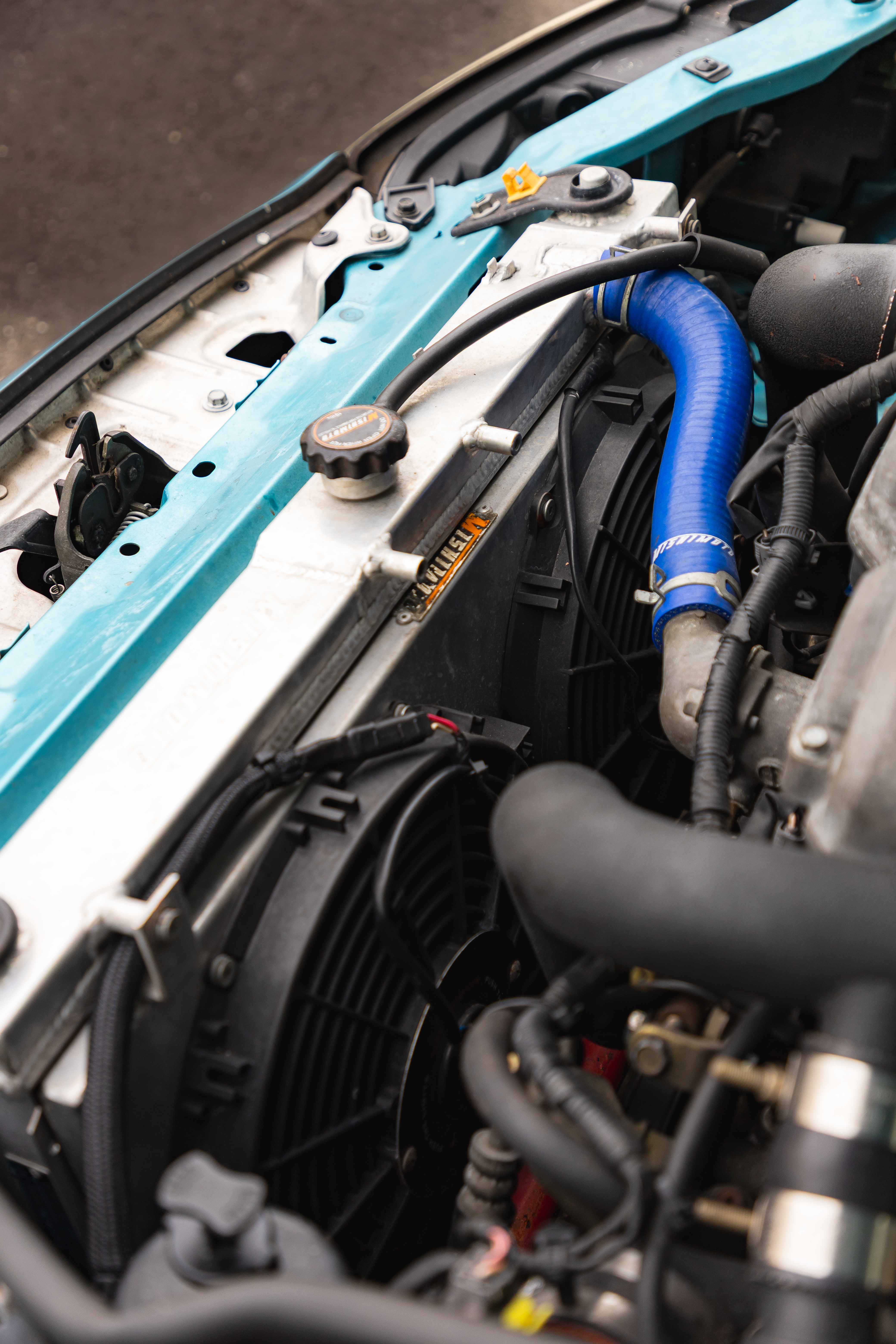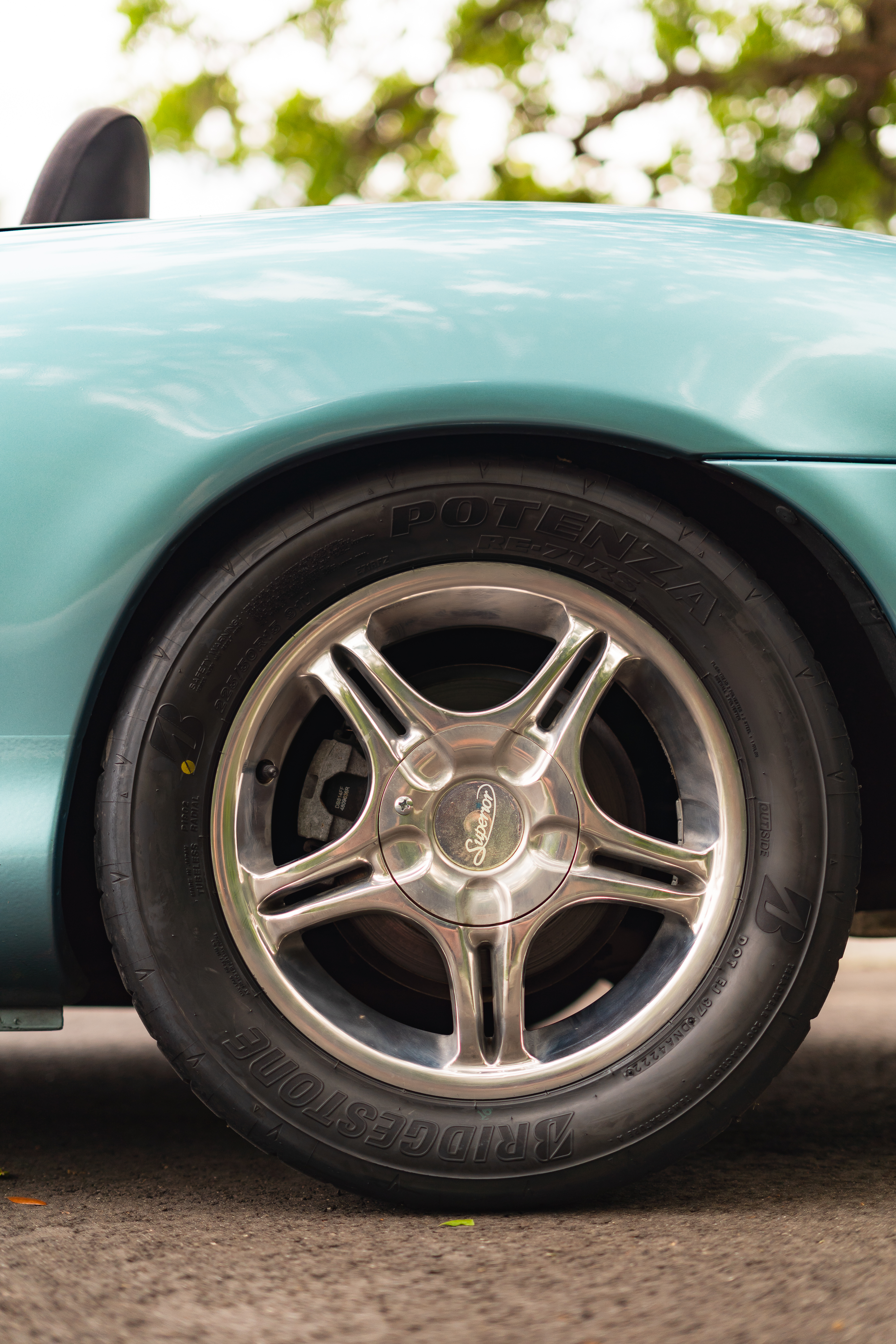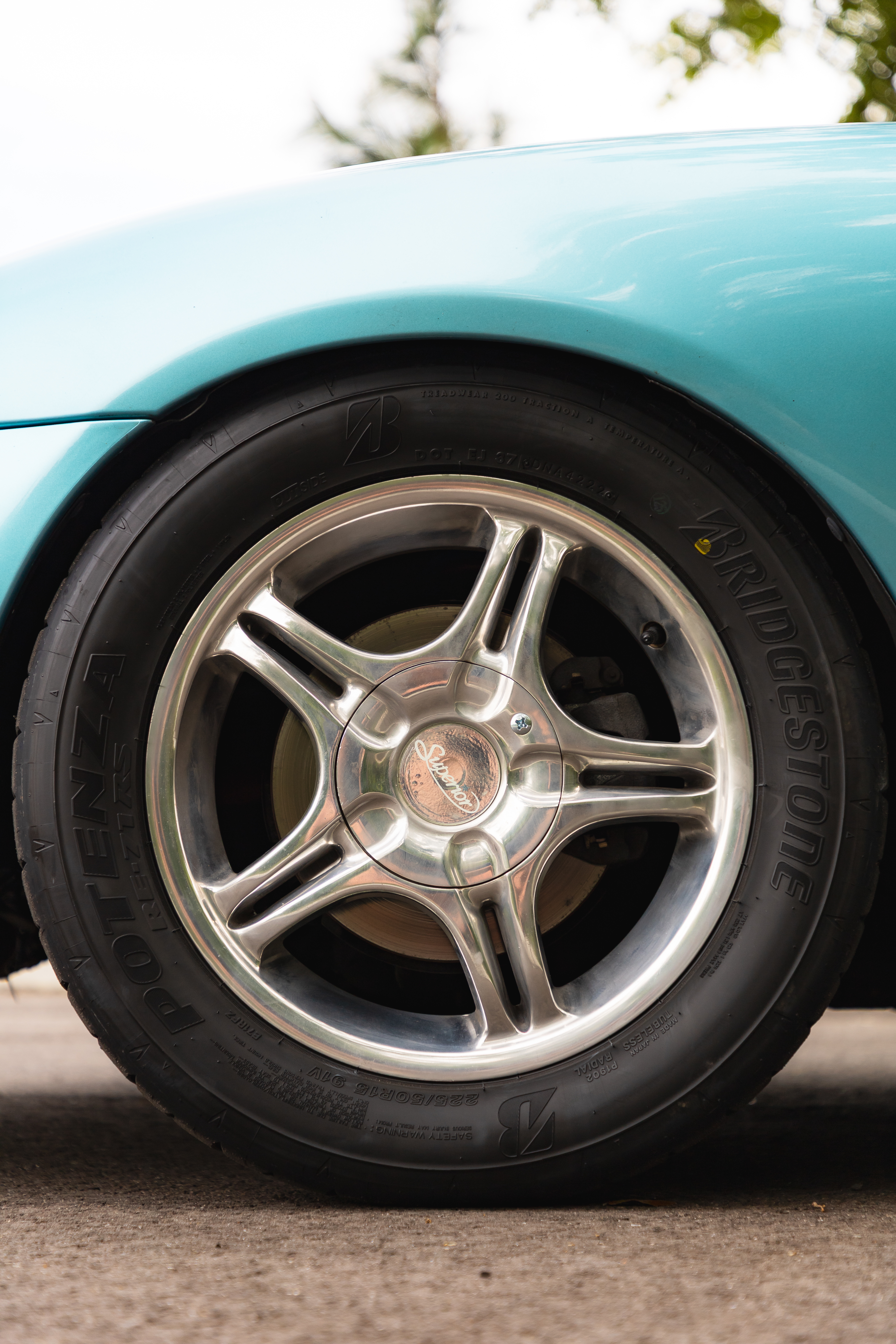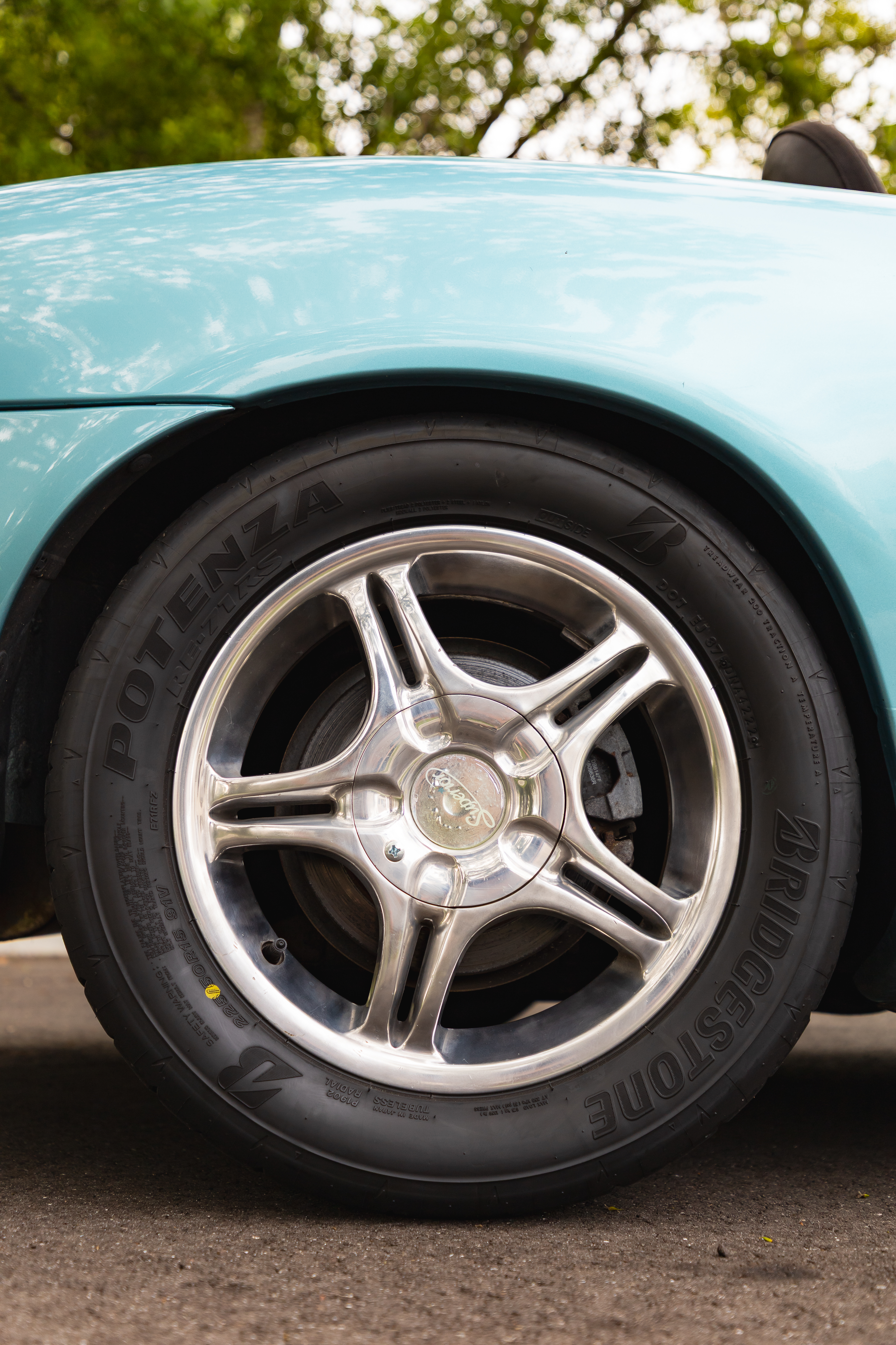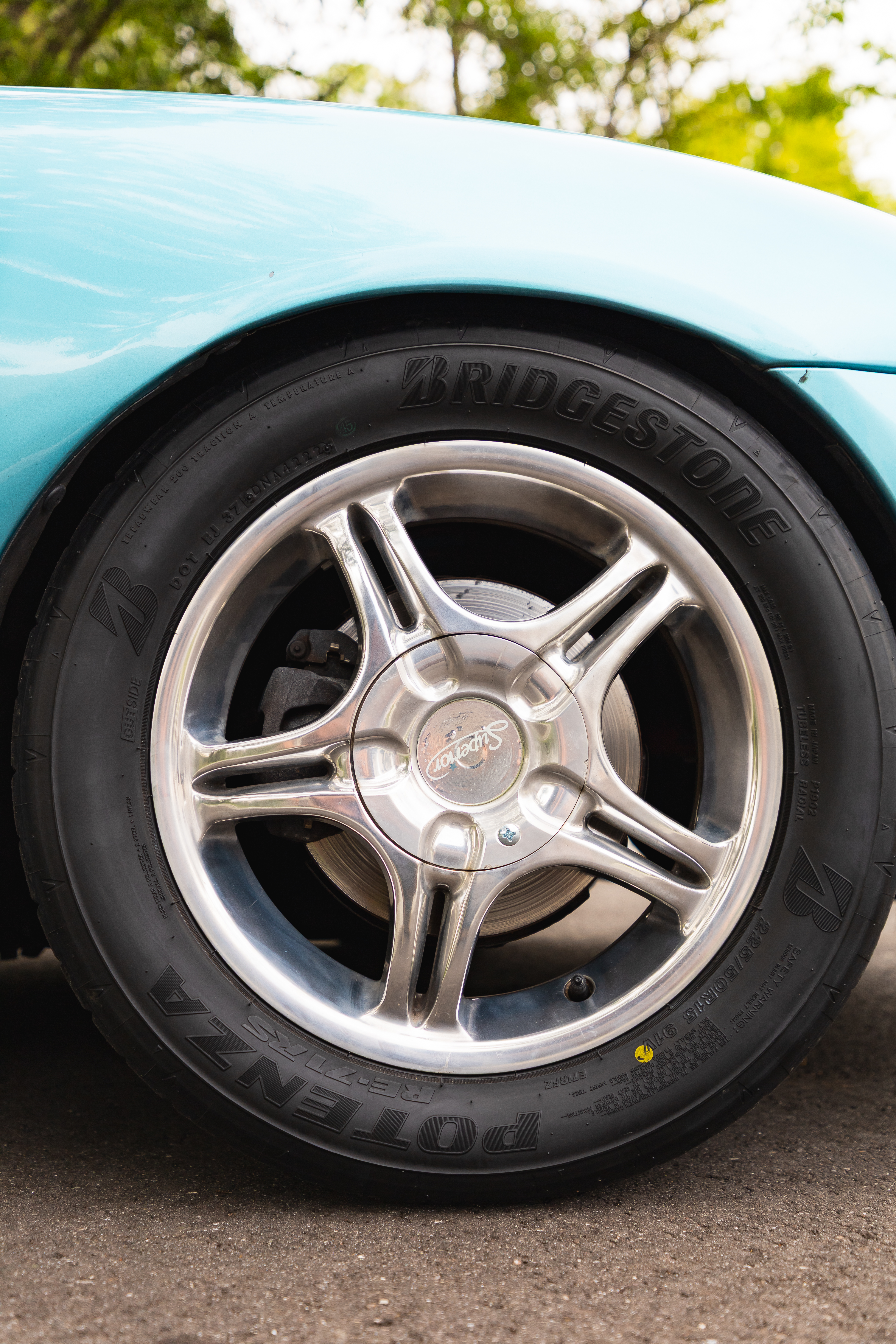 Additionally, the car was swapped to a 6 speed from the MazdaSpeed Miata, a 4.1 helical LSD, and is equipped with an ACT clutch to handle the extra power. Oh, I didn't mention how much extra power did I? When originally tuned, and the dyno sheets are included to prove it, this car pushed over 300 hp to the wheels at 16 psi, and it's been doing that ever since. That's more than double the original numbers, so be ready to hold on tight. Power is delivered to the road via a new set of Bridgestone Potenza RE71RS tires, wrapping period Superior alloy wheels, so grip is not in question (well, unless you really want to let it slide).